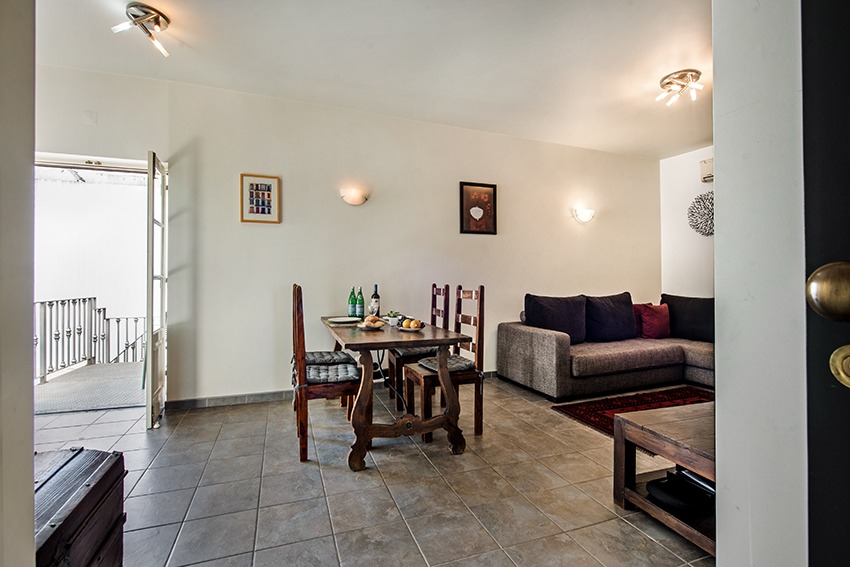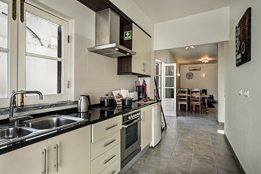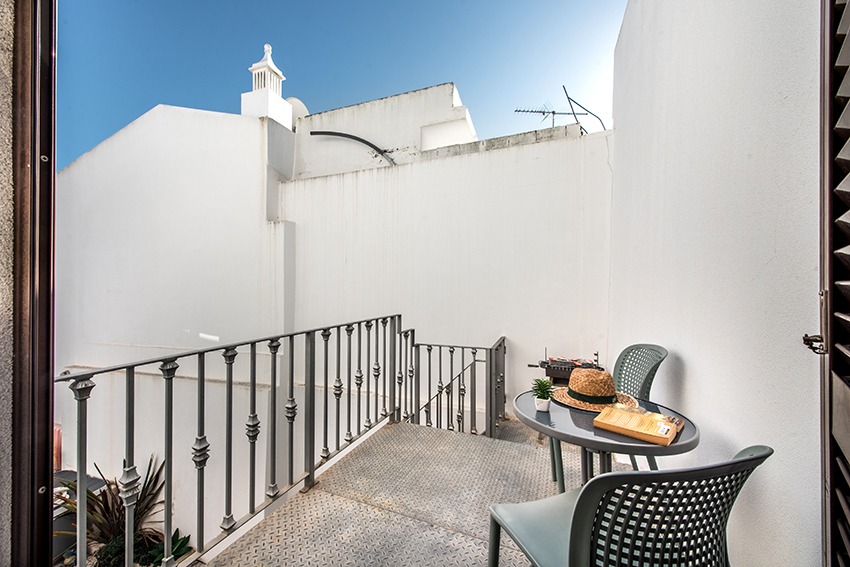 There are external stairs leading to the pool area of the ground floor apartment. This is usually locked but we can arrange the two properties together for larger groups making a three bedroom townhouse (see reference HHA-67, apartment with private swimming pool in center of Tavira)