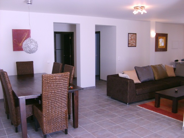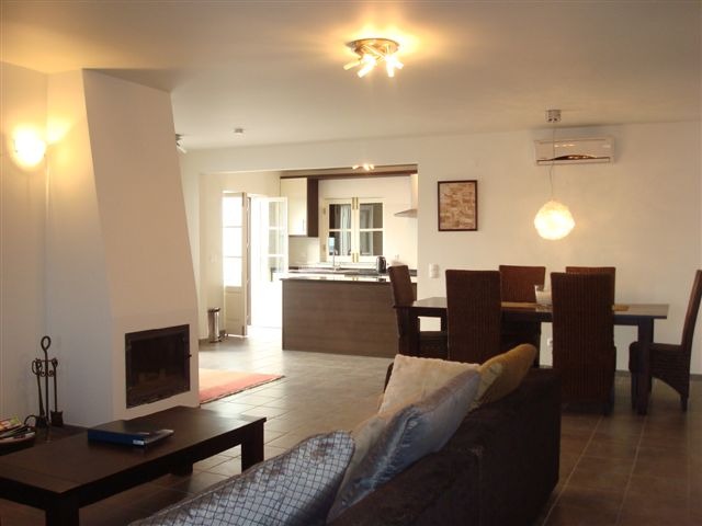 The spacious accommodation consists of a large living room with separate dining area and fireplace with wood-burning stove, a fully equipped kitchen (electric hob & oven, microwave oven, fridge/freezer, dishwasher, washing machine, toaster, kettle) with granite work surfaces. The master bedroom has a large four-poster bed and en-suite bathroom, the second bedroom has twin beds. Both have plenty of wardrobe space. From both the kitchen and the living area, double doors open onto the pool area and private garden with sun-loungers. Satellite TV, Air conditioning for heating and cooling. Even though this apartment is on the ground floor it enjoys lots of light and has a very nice ambiance.