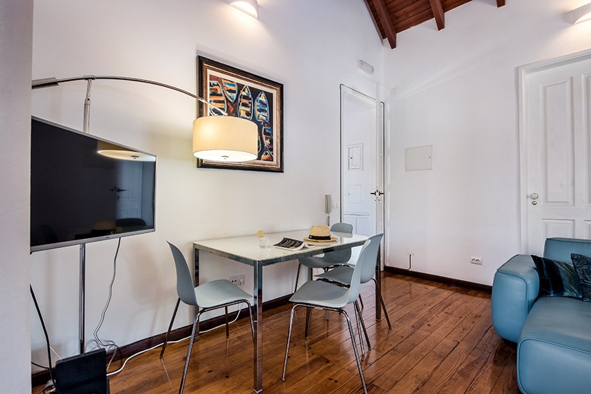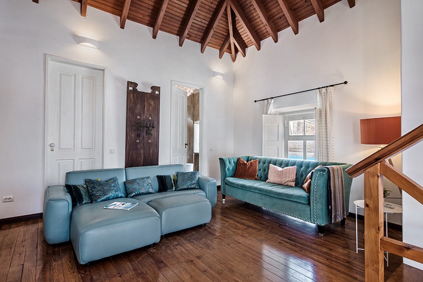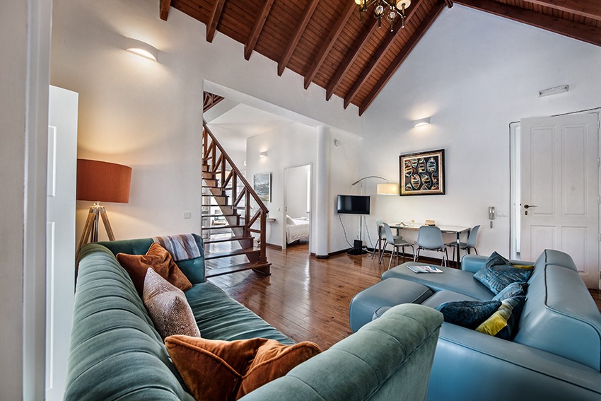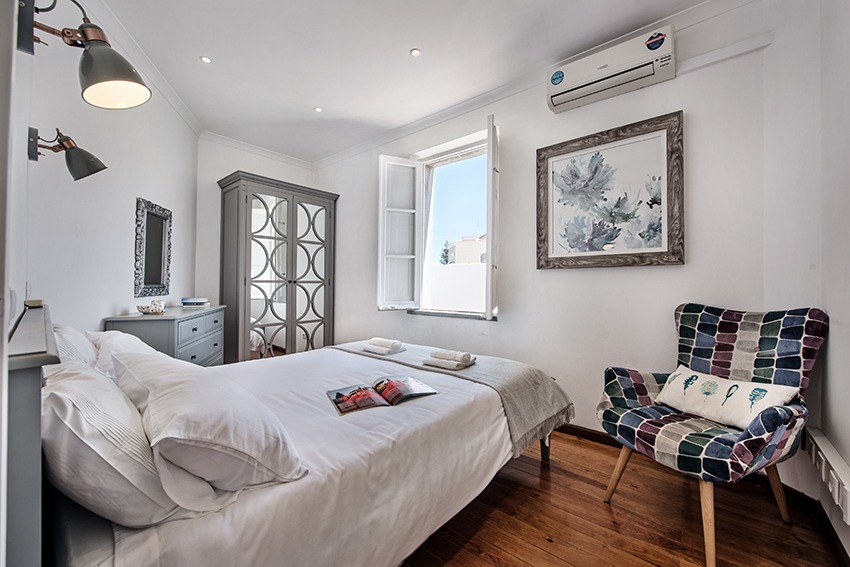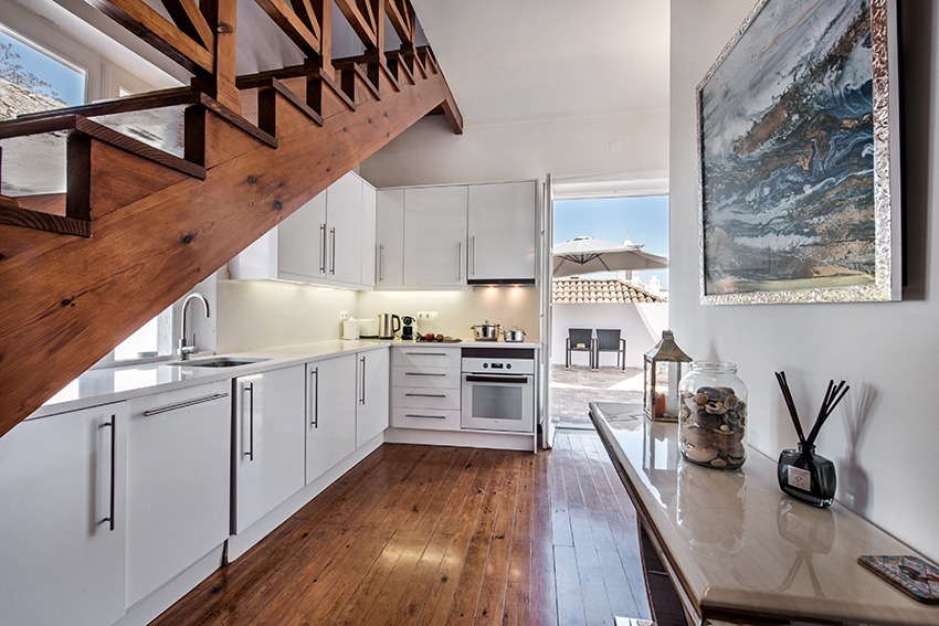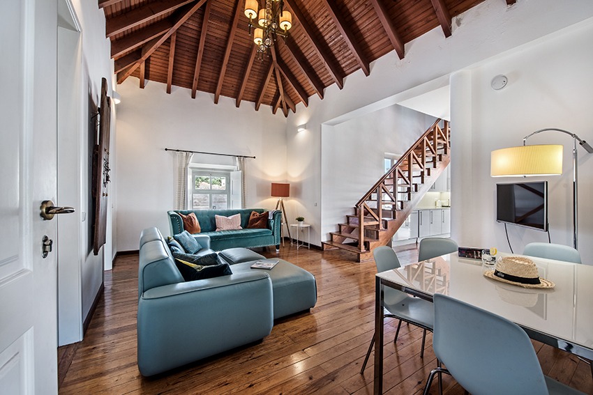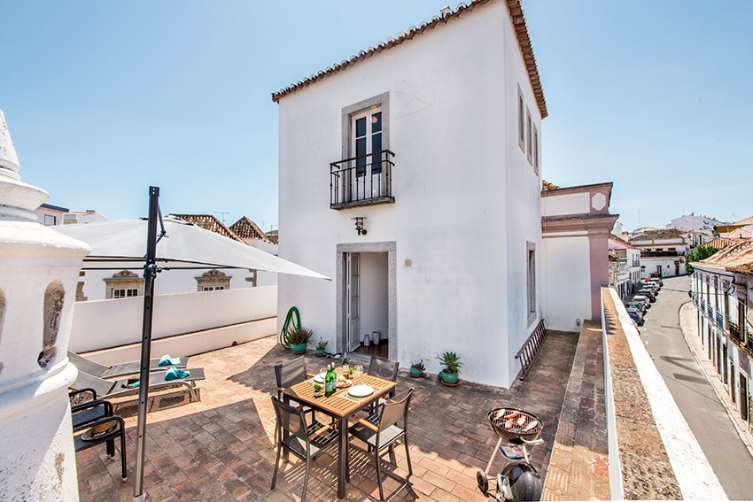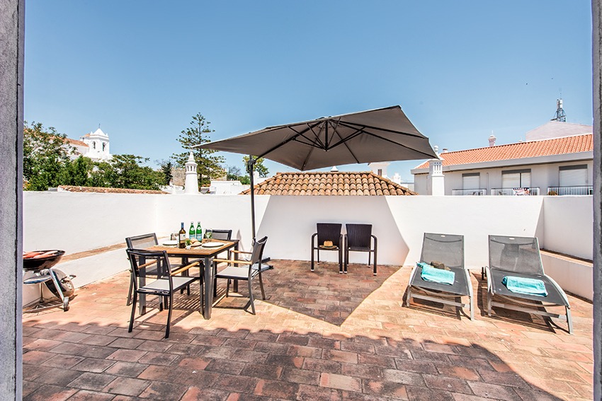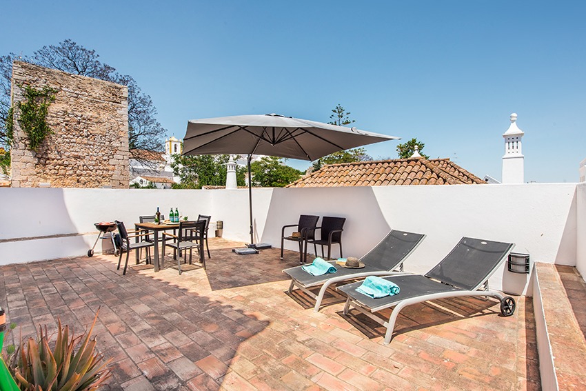 The apartment is located approx. 100 meters from the main square in front of the Old Roman bridge, you just walk outside from the apartment and follow the Rua da Liberdade. It is a short 2 minute walk. All amenities are within walking distance (a car is not needed) from this very well presented, stylish luxury apartment. The property consists of a spacious, light and bright living room with dining area, adjacent fully fitted and equipped kitchen; all in open plan design. Both good size double bedrooms have wardrobes. Modern bathroom with walk-in shower, vanity, w.c. and bidet. The very large and private terrace is a real gem to have, as outdoor space in this part of town is usually rather scarce. The access to the terrace is from the kitchen which is positioned between the living room and the terrace. There are sun loungers, a parasol and a table & chairs. The apartment has air conditioning in all bedrooms. The double height faulted ceilings give a very airy feel to this unique property. Direct access by staircase from street level to the apartment.