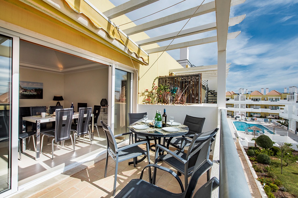 Comfortable and bright penthouse apartment in Cabanas Beach Club, perfect for families, pool, beach and golf holidays. This “home away from home” with communal pool is centrally located with all amenities within walking distance. A car is recommended but not essential. The train, boat, taxi and bus are all within a 10 minutes walk. The nearest supermarket for fresh bread, fruit and milk just a 2 minutes walk.