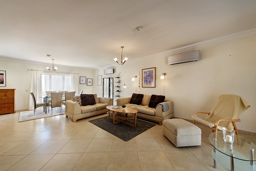 Spacious modern three bedroom townhouse with large roof terrace with Jacuzzi, large private garage and Free Wi-Fi For Rent in Quinta da Pegada, an estate on the outskirts of Tavira within walking distance to the centre of town.