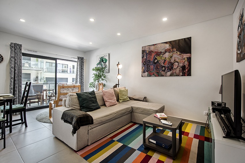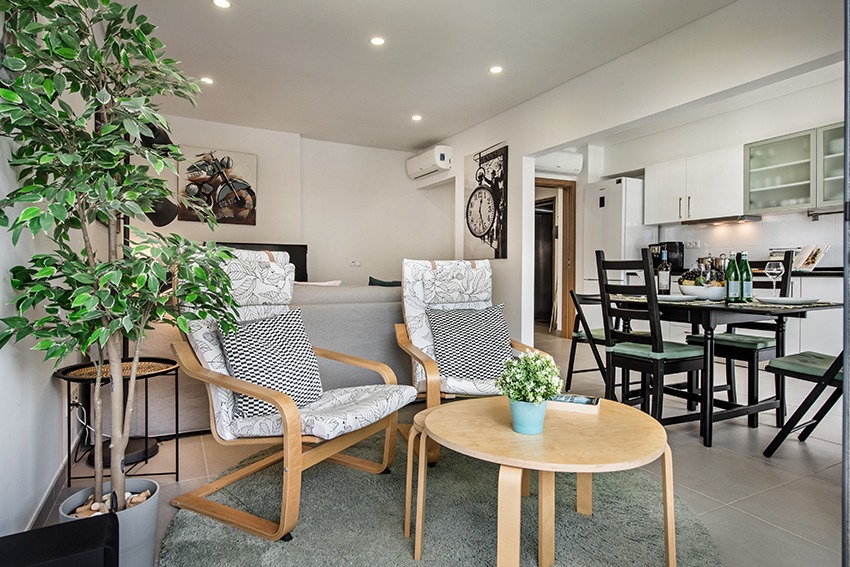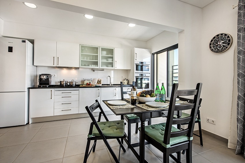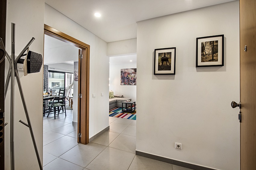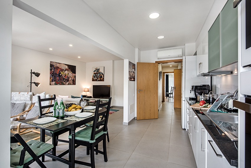 The property is located on a good location between the commercial center Gran Plaza and Tavira town center. All amenities are within walking distance from this very well presented, stylish luxury apartment. The property consists of a hallway leading to a light and bright living room with dining area, adjacent fully fitted and equipped kitchen; all in open plan design. Both good size double bedrooms have built in wardrobes. There are two bathrooms; one en-suite with bath and shower and one with shower. Sofa bed in the living room. Access from both living room and kitchen through large sliding windows onto a South East facing terrace with table and chairs. The apartment has air conditioning in all rooms and a private terrace of approx. 8m2 with table & chairs. Access to the apartment by elevator or staircase.
