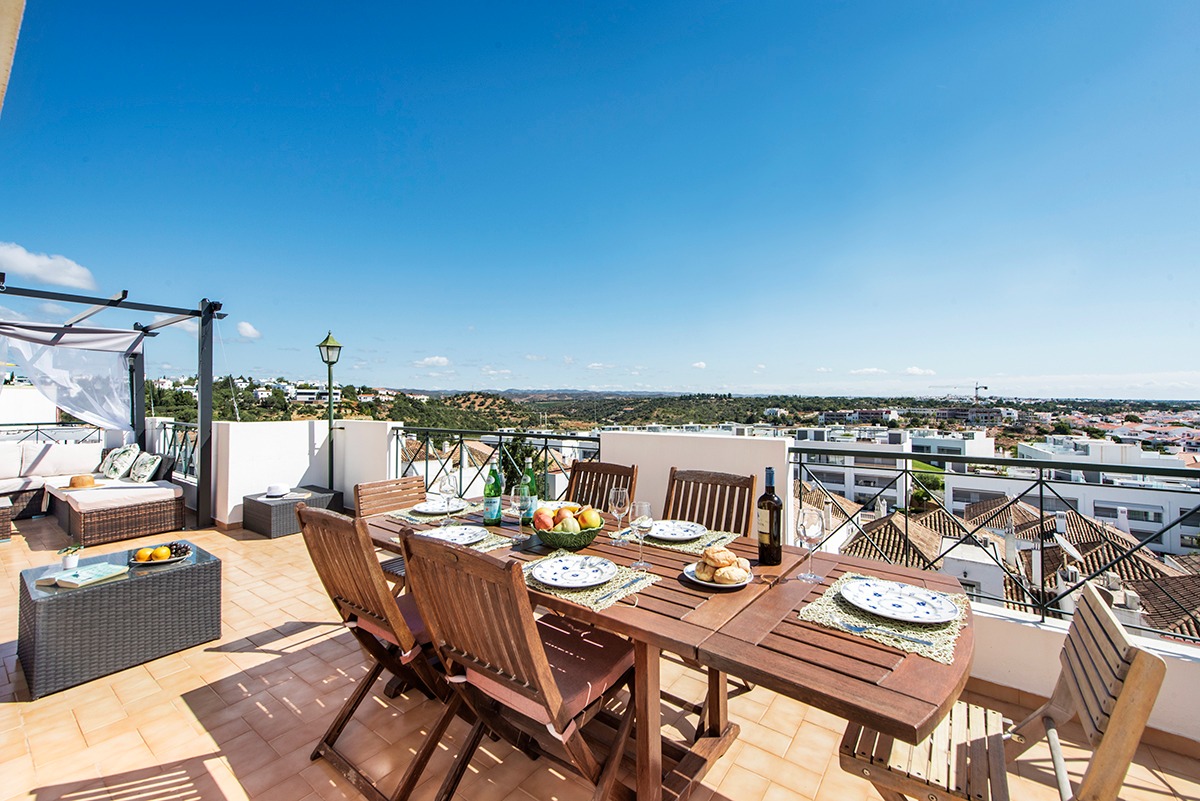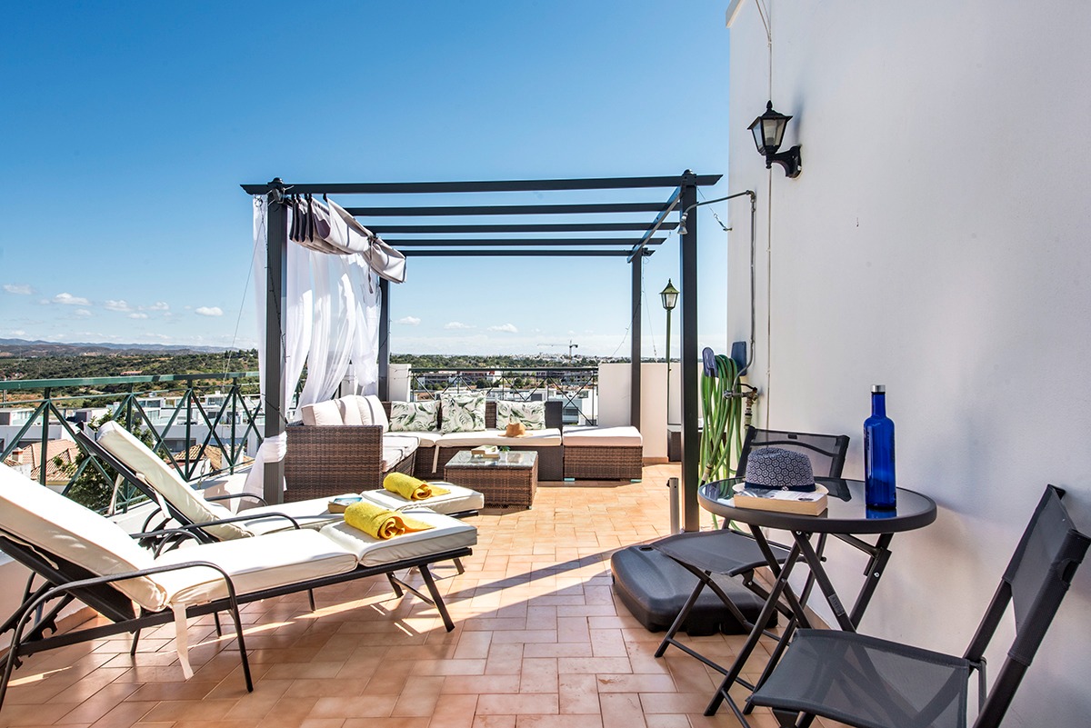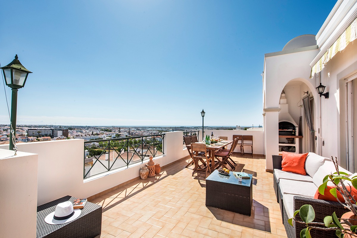 Three bedroom Penthouse Apartment with Free WiFi, very large terrace & spectacular views of Tavira towards the sea.