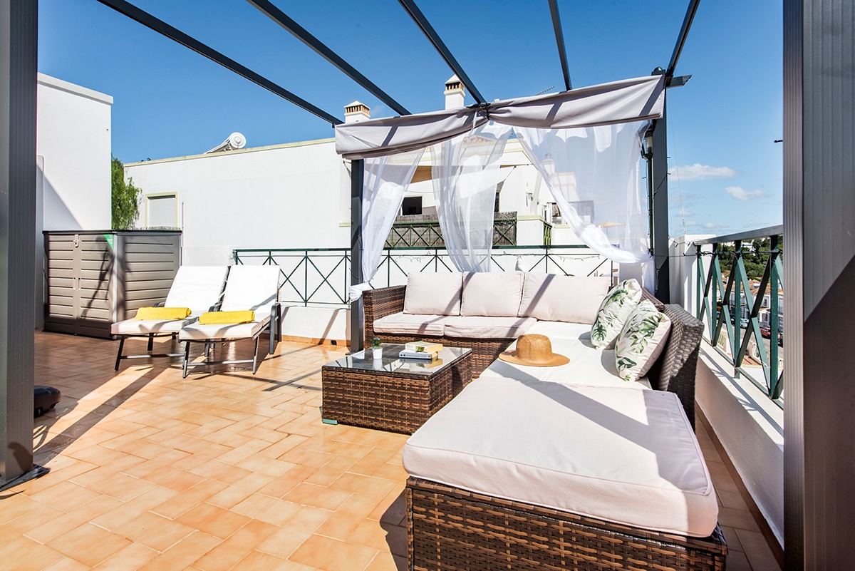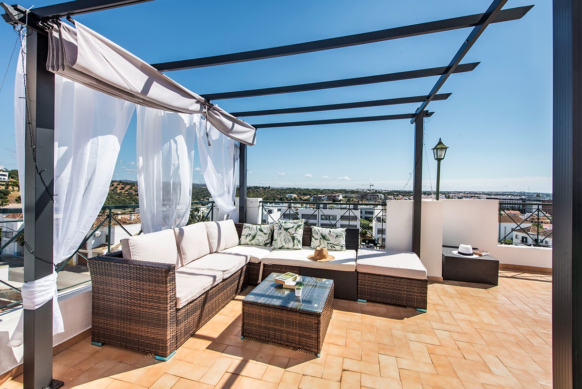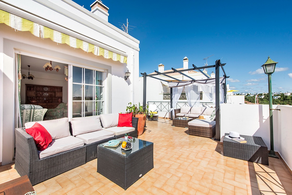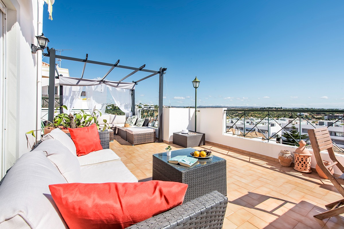 Three bedroom Penthouse Apartment with Free WiFi, very large terrace & spectacular views of Tavira towards the sea.