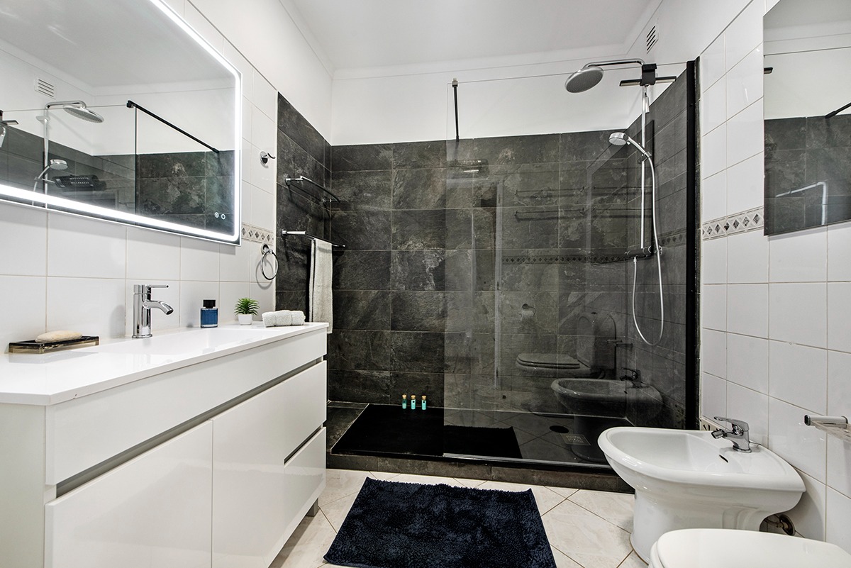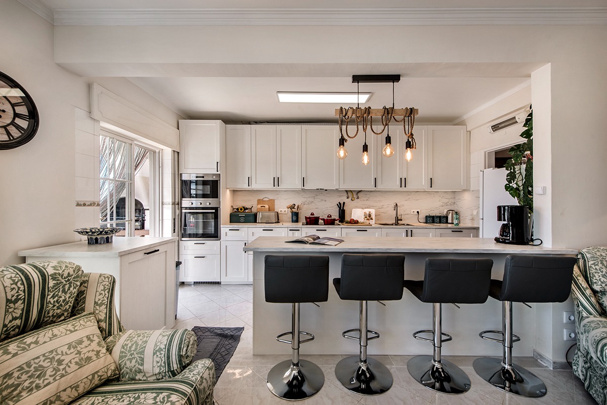 The property comprises an entrance hall leading to the good size living room with dining area and open plan modern fully equipped kitchen, three double bedrooms (2 double beds & 1 twins) all with built in wardrobes. The apartment has a good size, well stocked and equipped kitchen with hob and oven, fridge/freezer, washing machine, tumble dryer, dishwasher, kettle, toaster & microwave. Pots, pans, coffee making equipment, crockery and cutlery, including BBQ utensils are all provided. There are two modern bathrooms with walk in shower. This apartment has air conditioning and a large private terrace of approx. 50m2 with table & chairs, lounge area, sun loungers, table and chairs and built in BBQ; an ideal place to relax and enjoy the beautiful view of the old town.